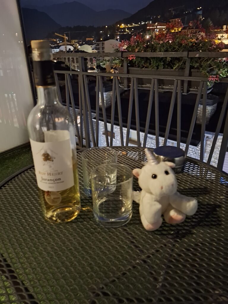 Zurück in unserem Zimmer genießen wir das Privileg der tollen Aussicht über die Stadt bei einem Glas Wein.