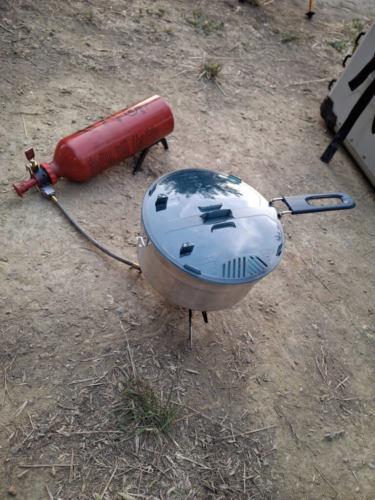 Abends wird auf dem Zeltplatz gekocht. Die Bedienung des Benzinkochers ist auch diesmal eine Herausforderung. Wir achten penibel darauf, nicht alles in Brand zu setzen. Die Kocherei mit dem Ding verursacht mir Stress und ich stelle erneut infrage, ob wir das überhaupt benötigen auf der Weltreise.