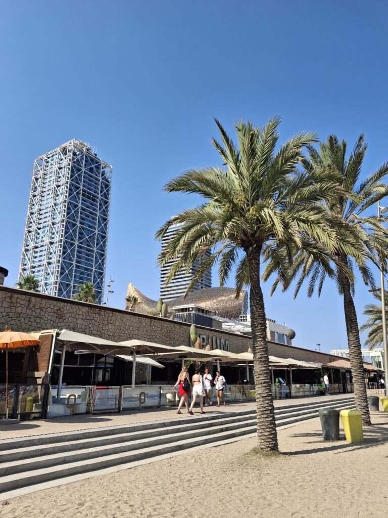 Gleich hinter uns läuft eine Vergnügungsmeile vorbei und vor uns können wir schwarzafrikanischen Modellathleten zusehen, wie sie mit Touristen Beachball spielen.