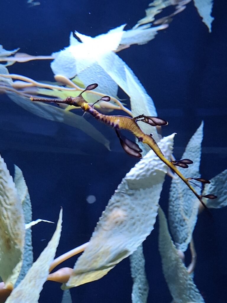 Als wir reingehen und uns die Tickets kaufen stellen wir erleichtert fest, dass es dort drin eine gute Klimaanlage mit akzeptablen Raumtemperaturen gibt. Das Gepäck wird in einer verschließbaren Box untergebracht und dann folgen wir einem vorgegebenen Pfad durchs riesige Haus. Die Ausstellung umfasst hunderte kleine Aquarien und eben dieses eine Große. Alles ist gut präsentiert und man kann viele Erklärungstafeln auf Englisch lesen. Es gibt sogar ein Kino mit Lehrfilmen für Kinder. Das große Aquarium ist wirklich sehenswert. Darin schwimmen 3 Meter lange Haie, große Rochen und viele andere Fische herum.