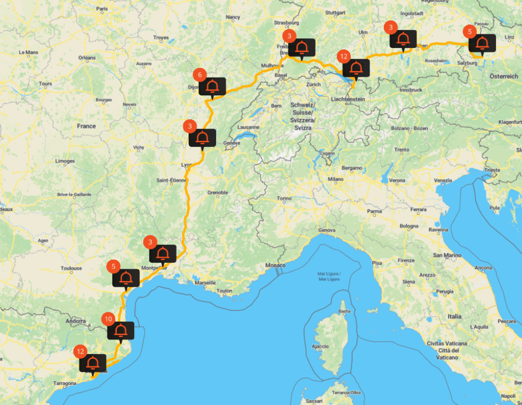 Wie wir an den Signalen unserer GPS-Tracker erkennen können, sind SOL und KIRA bereits am 19. August per LKW-Transport wieder in FRANKENMARKT angekommen. Wir machen uns sein paar Tage später per Bahn auf den Weg und holen unsere Motorräder ab. Erwartungsgemäß startet KIRA nicht und braucht etwas Hilfe vom Starterakku. Unsere Motorradklamotten wurden in einer großen IKEA-Tasche, gesichert durch ein Stahlnetz mit Vorhangschloss, ebenfalls zurückgebracht. Wir ziehen uns im Freien am Hof der Spedition um und fahren dann Richtung Autobahn. Ärgerlicherweise stellt sich heraus, dass die frisch reparierten Zusatzscheinwerfer jetzt wie Stroposkop-Lichter blinken und sich erst nach vielen Versuchen abschalten lassen.