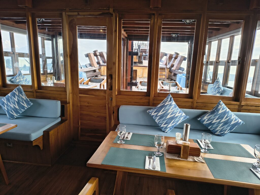 Das Frühstück ist für uns vorbereitet und unsere Kabinen werden uns zugewiesen. Siegrid und ich sind im Unterdeck und teilen uns die Kabine #1.