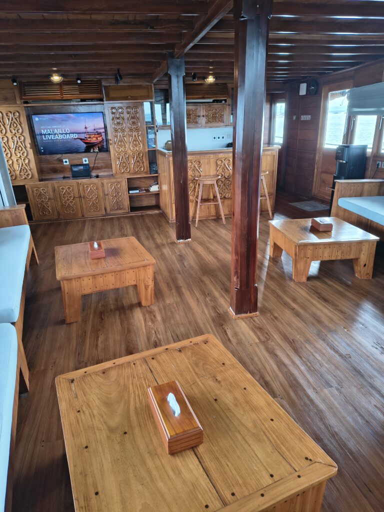 Der erste Tag an Board wird ein Reisetag sein. Zuvor noch die Kabinen einräumen, die Tauchsachen bereitlegen. Alle haben einen fixen Platz zugewiesen, meiner ist mit 1B beschriftet. So kann die Crew unsere Tauchsachen zuordnen und uns optimal unterstützen.